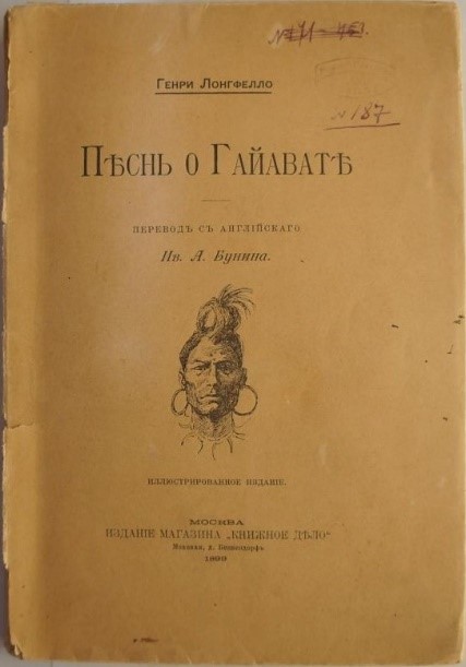 2. Книга «Генри Лонфелло. Песнь о Гайавате. Перевод с английского Ив. Бунина. «Марьѣ Павловне Чеховой съ уваженiемъ и сердечнымъ расположенiемъ - искренно Ив. Бунинъ. 1 Декабря 1900. Москва». КП 848/126;