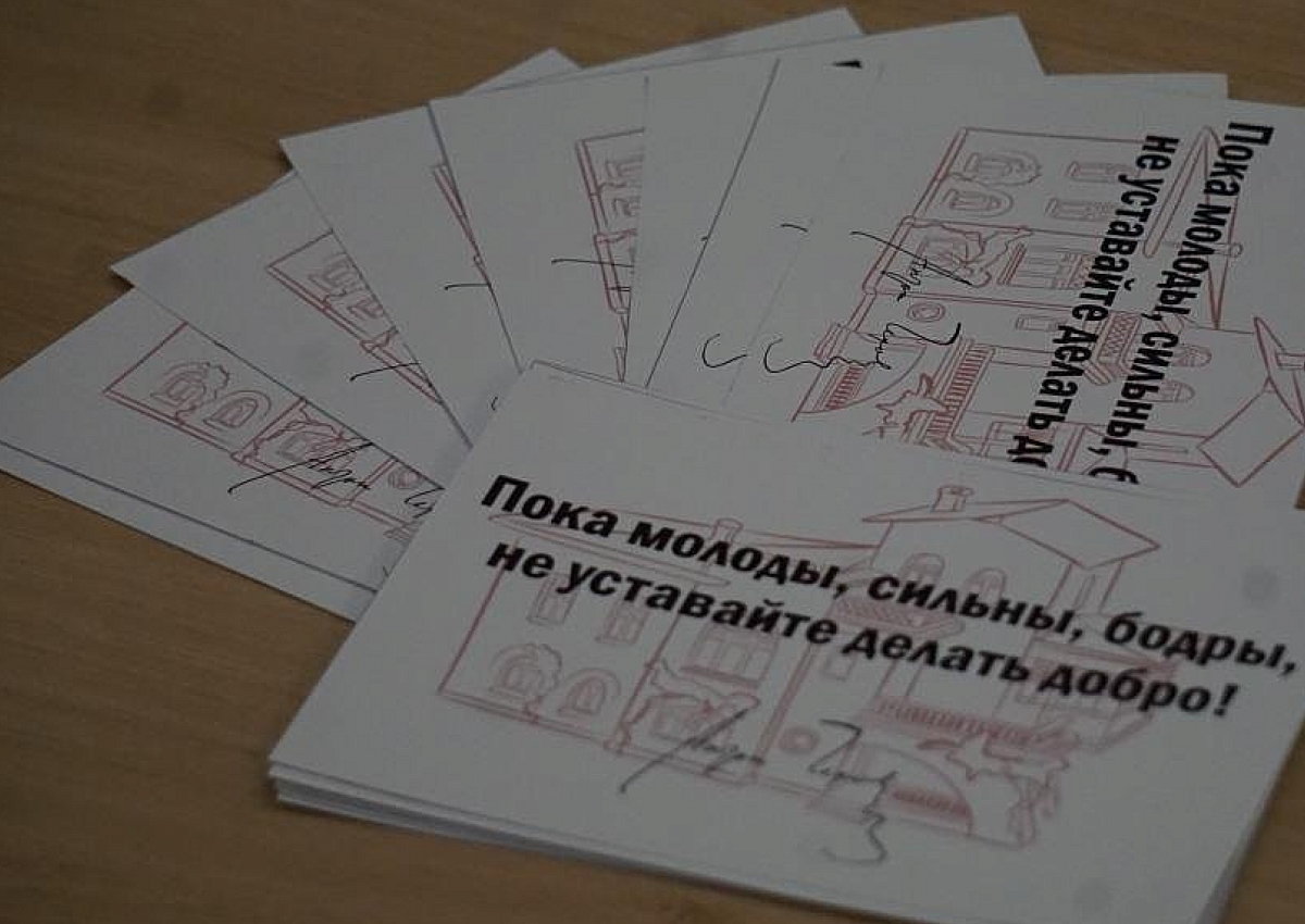 В завершение мероприятия каждый желающий смог передать слова поддержки российским военным, подписав открытки, которые затем передадут вместе с гуманитарным грузом на передовую.