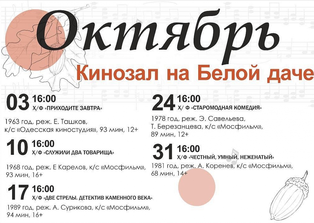ПРОГРАММА КИНОЗАЛА БЕЛОЙ ДАЧИ В ОКТЯБРЕ