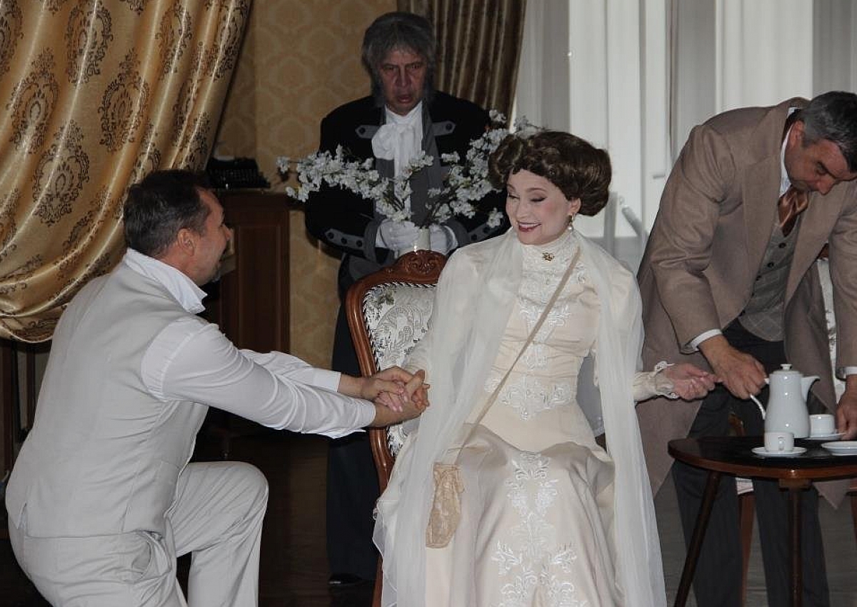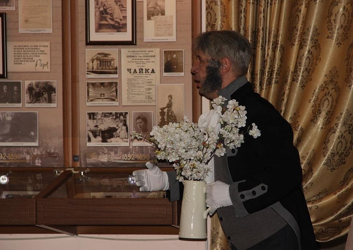 Эстафету подхватили профессионалы: артисты Крымского академического русского драмтеатра им. М. Горького, сыгравшие ключевые сцены из пьесы «Вишневый сад». Драматическое действо развернулось в зале литературной экспозиции Дома-музея А.П. Чехова в Ялте, создав таким образом неповторимый эффект присутствия.